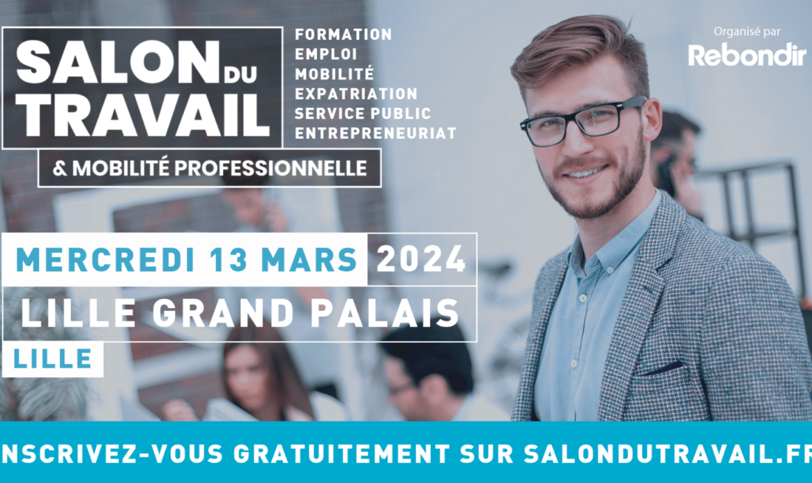 Inscrivez-vous gratuitement au prochain Salon du Travail & de la Mobilité professionnelle et découvrez 5 villages dédiés à la reconversion professionnelle. Formation, mobilité, entrepreneuriat, emploi, emploi public… Transitions Pro Hauts-de-France vous donne rendez-vous au Stand S9 toute la journée pour concrétiser votre projet professionnel.